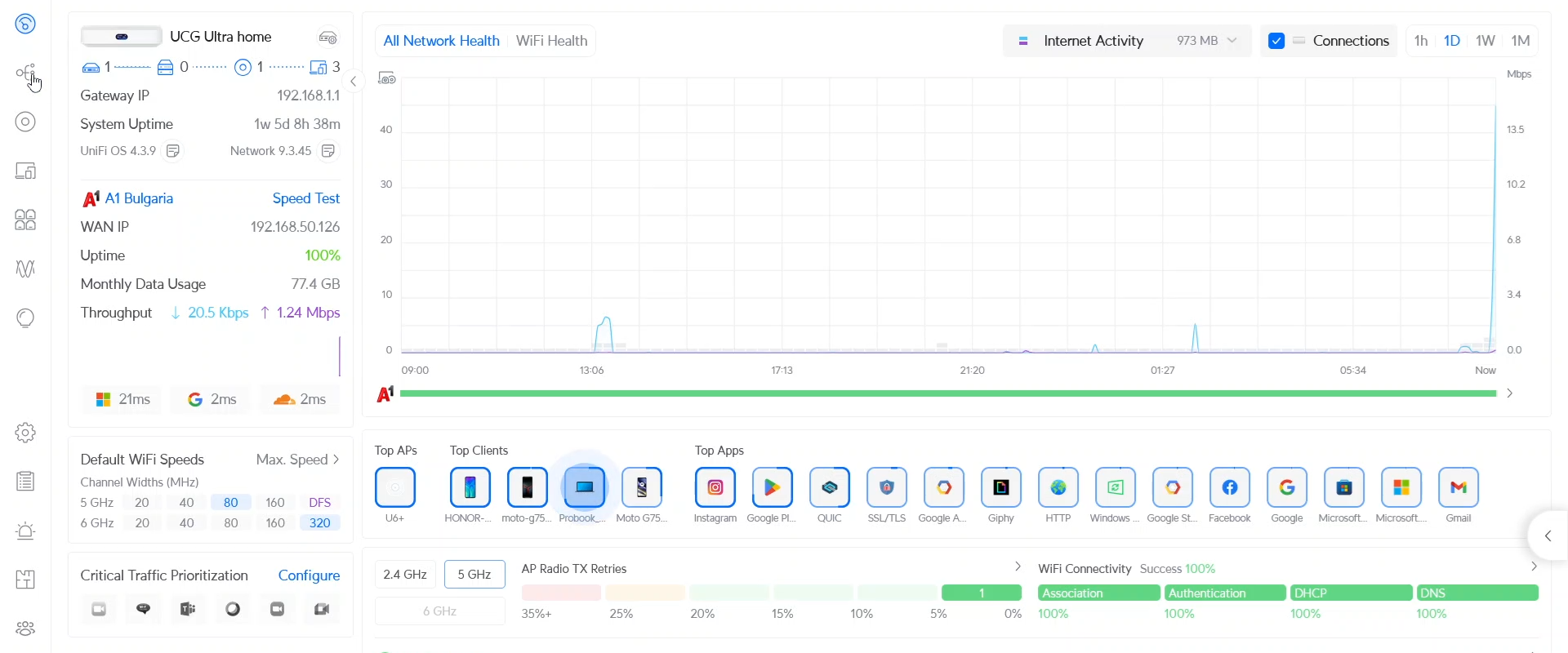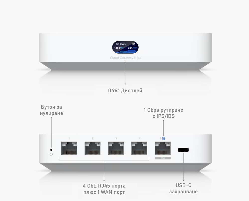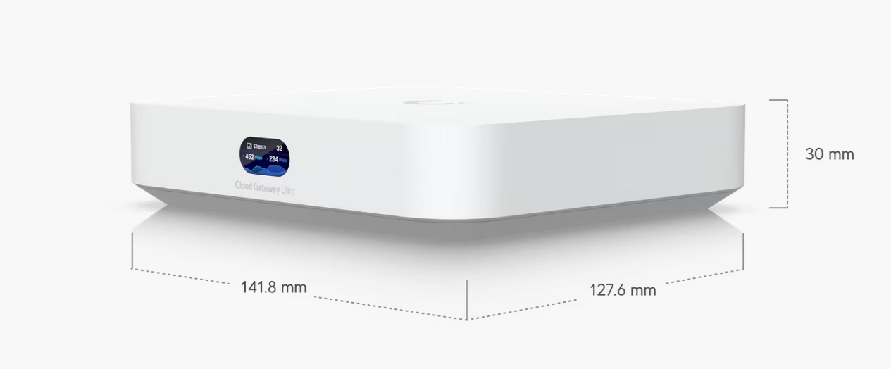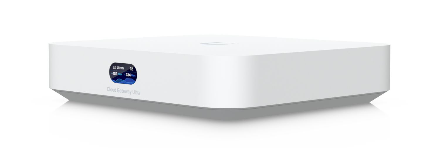 UniFi Cloud Gateway Ultra е компактен gateway (шлюз) от Ubiquiti, предназначен за малки до средни бизнеси или напреднали домашни потребители, които използват екосистемата на UniFi. Напрактика UniFi Cloud Gateway Ultra е устройство, което обединява в себе си две функционалности – шлюз и уеб базиран контролен панел. С помощта на този контролен панел е възможно да управляваш мрежата си от всяко място – само с интернет и профил в системата (например UI.com за конкретното устройство). По този начин може да се добавят и конфигурират други UniFi устройства, може да се наблюдават мрежовите ресурси в реално време, както и да се интегрират други UniFi приложения.